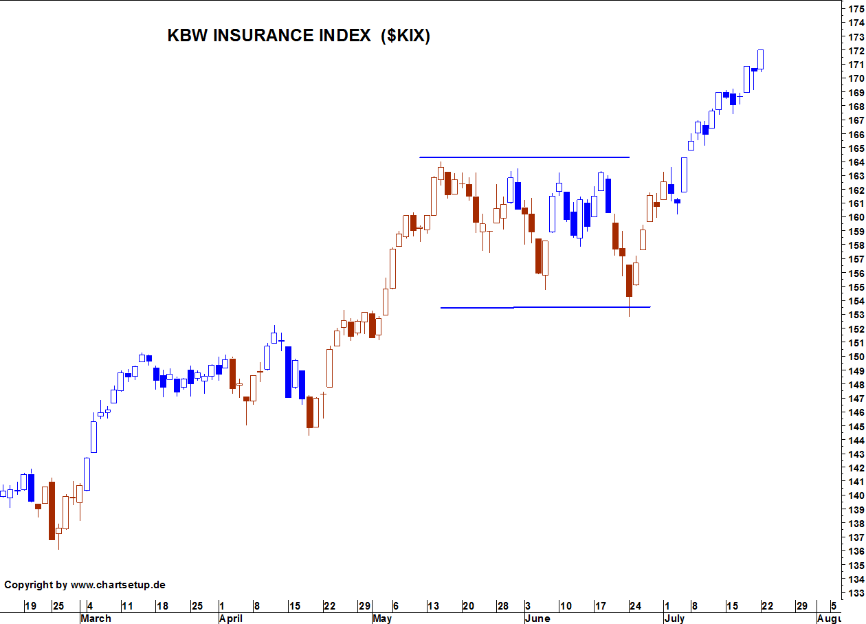 Schier unaufhaltsam und mit überzeugendem Momentum scheint der KBW Insurance Index in Richtung seiner Hochpunkte aus dem Jahre 2007