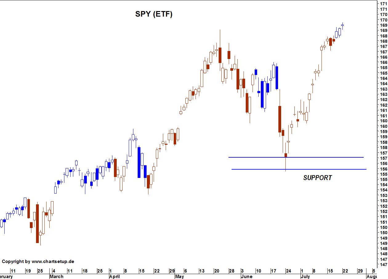 Ausgehend von den Korrekturtiefs bei 156-157 Punkten im SPY (ETF) gelang es dem amerikanischen Aktienmarkt in den letzten Tagen