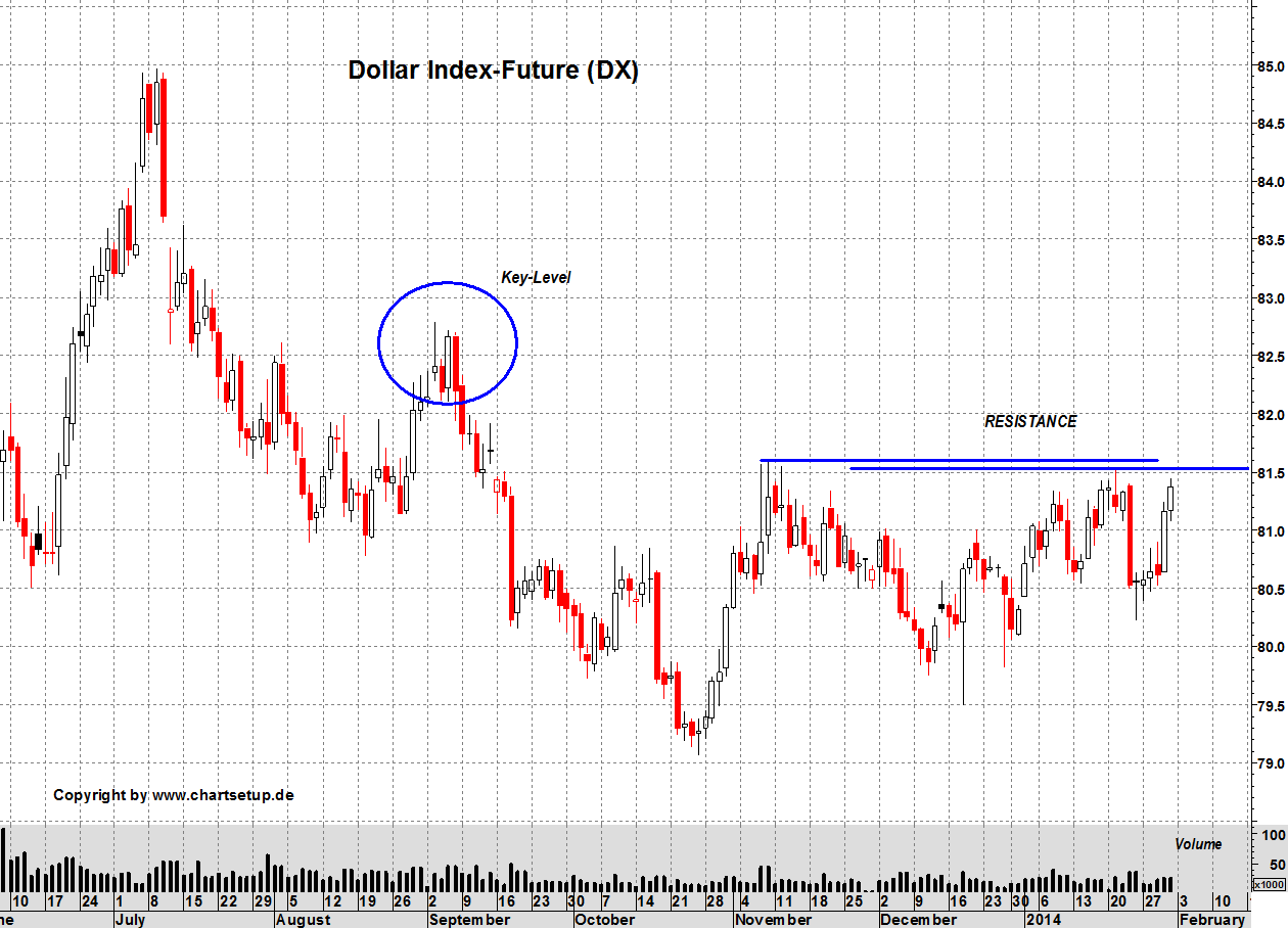 zulegen und seinen starken Einbruch vom 23. Januar wieder wettmachen. Er stößt jetzt zwischen 81,50 und 81,60 Punkten
