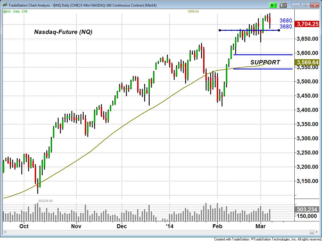 Im Gegensatz dazu zeigt sich beim Nasdaq-Future noch ein gutes und technisch intaktes Bild. Allerdings