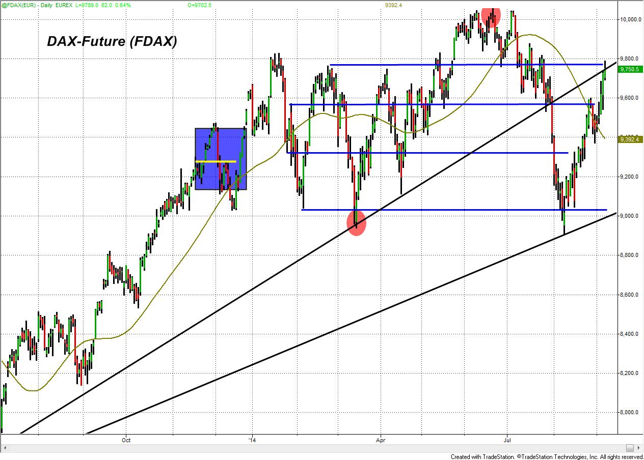 beachtliche Aufwärtsrallye, jedoch bedeutet das Erreichen der Marke von 9800 Punkten im DAX-Future